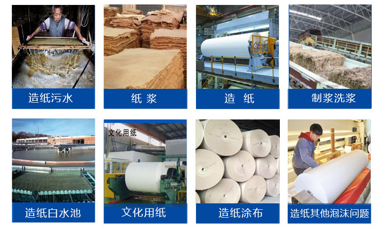 | 應(yīng)用領(lǐng)域 | 造紙、抄紙白水、造紙紙漿、造紙制漿消泡等體系 |