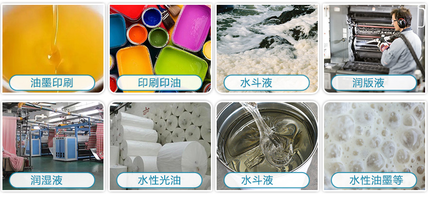 | 應用領域 | 印刷油墨、印油、水槽液、潤濕液、潤版液、水性光油、水性油墨、水斗液消泡等體系 |